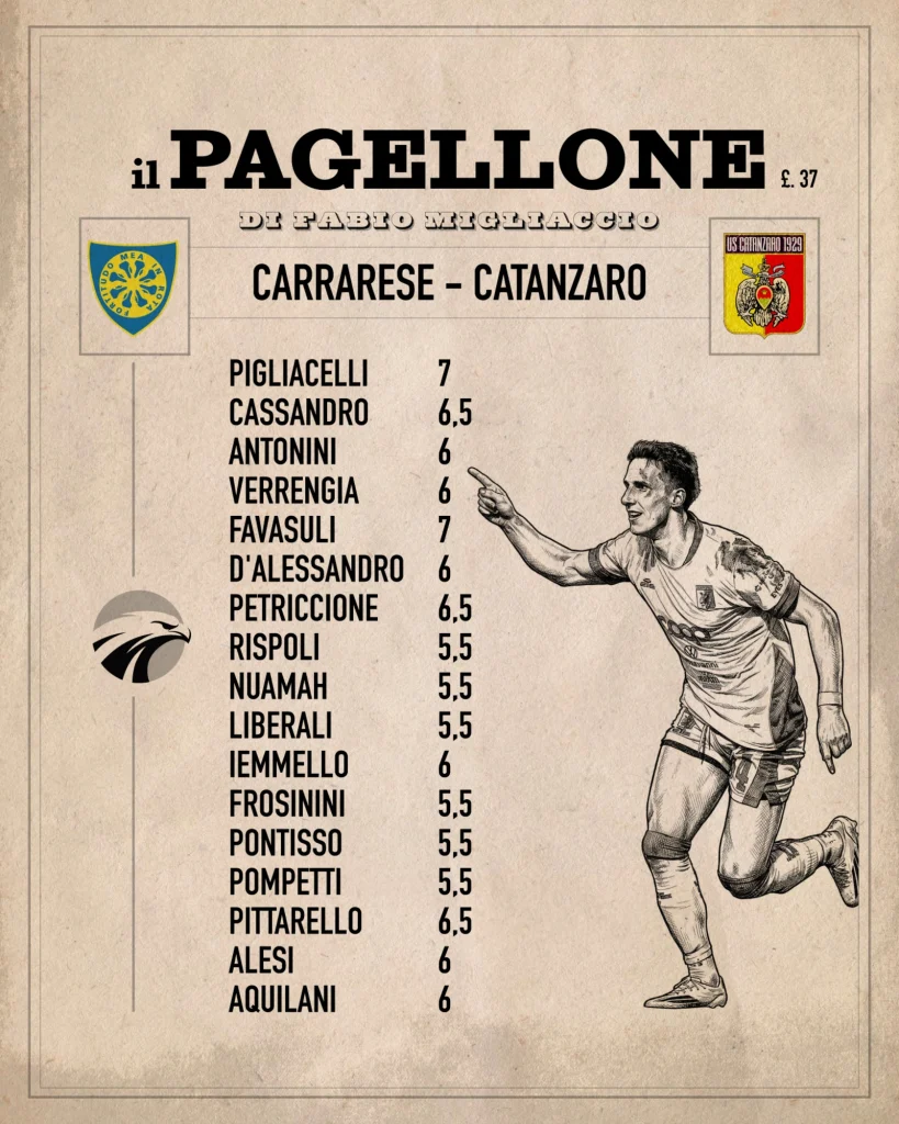 Il pagellone di Fabio Migliaccio della partita del 01 Marzo 2026. Catanzaro...